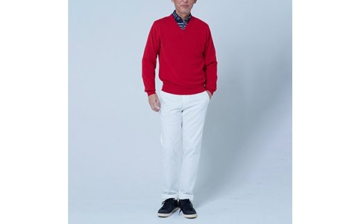 日本製 カシミヤ100% Vセーター 赤 Sサイズ(身幅48cm 身丈60.5cm)×1枚