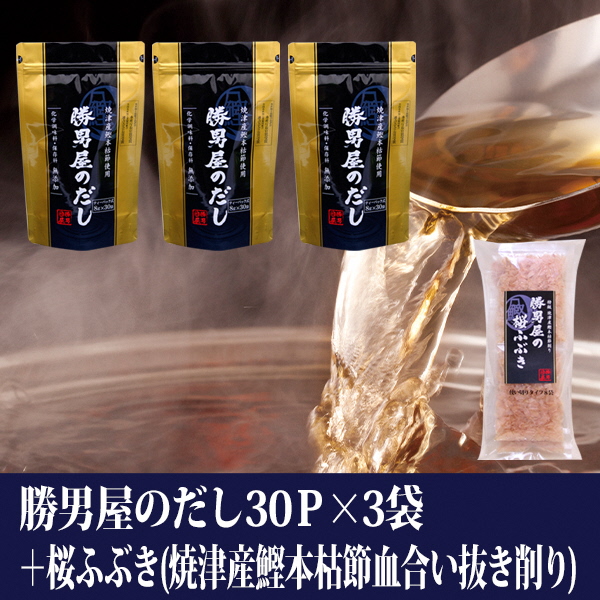 勝男屋のだし(8g×30袋):3袋、勝男屋の桜ふぶき(2g×8袋):1袋