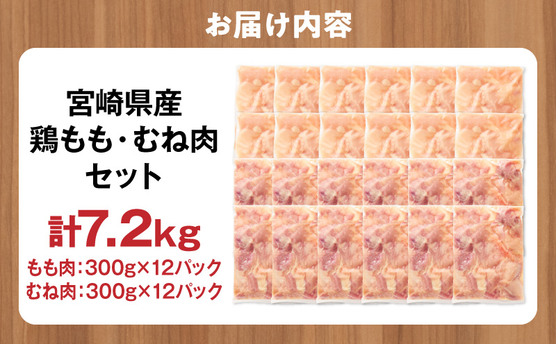 宮崎県産 鶏もも肉・むね肉セット 計7.2kg