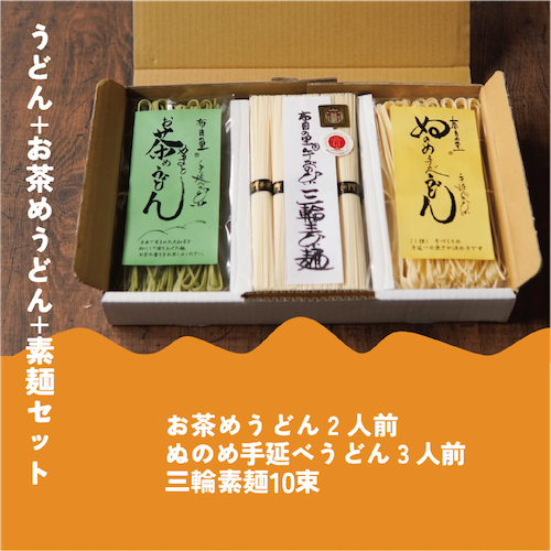 お茶目うどん150g(2人前)・三輪素麵500g・ぬのめ手のべうどん300g(3人前)