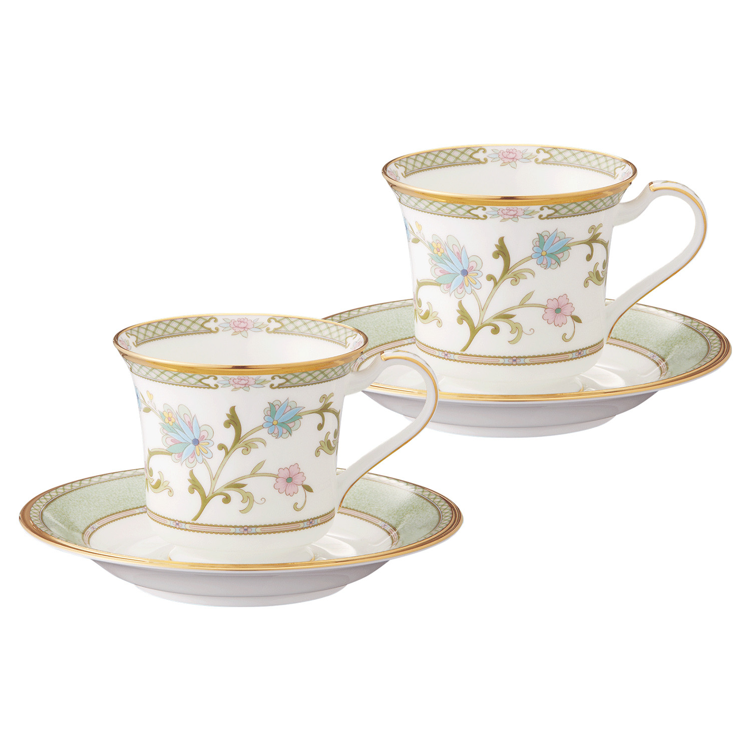 カップに咲き誇る花々は吉野山の桜、ソーサーの緑色は裾野の緑をイメージ。カップの内側に絵柄があしらわれ、紅茶の水色越しに揺れる絵柄を愛でていただける趣向もまた優雅です。