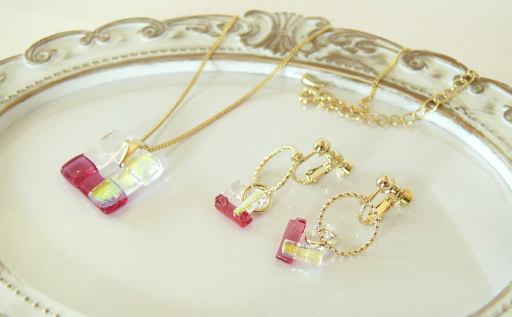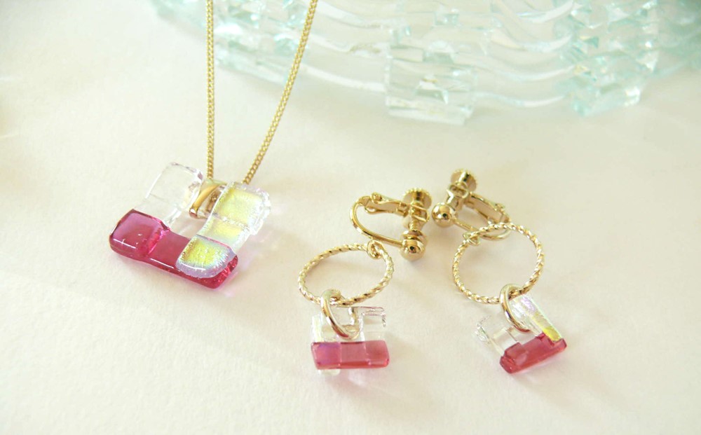 ローズピンク&オーロラゴールド&クリアのガラスで製作しました。