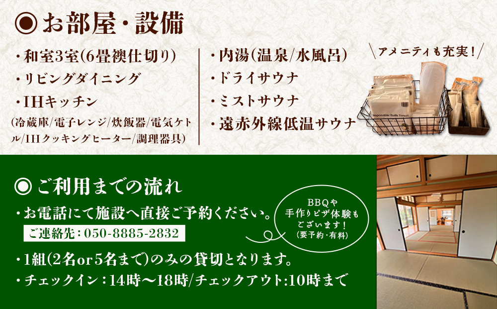 一棟貸切温泉宿1泊2日(5名様まで)