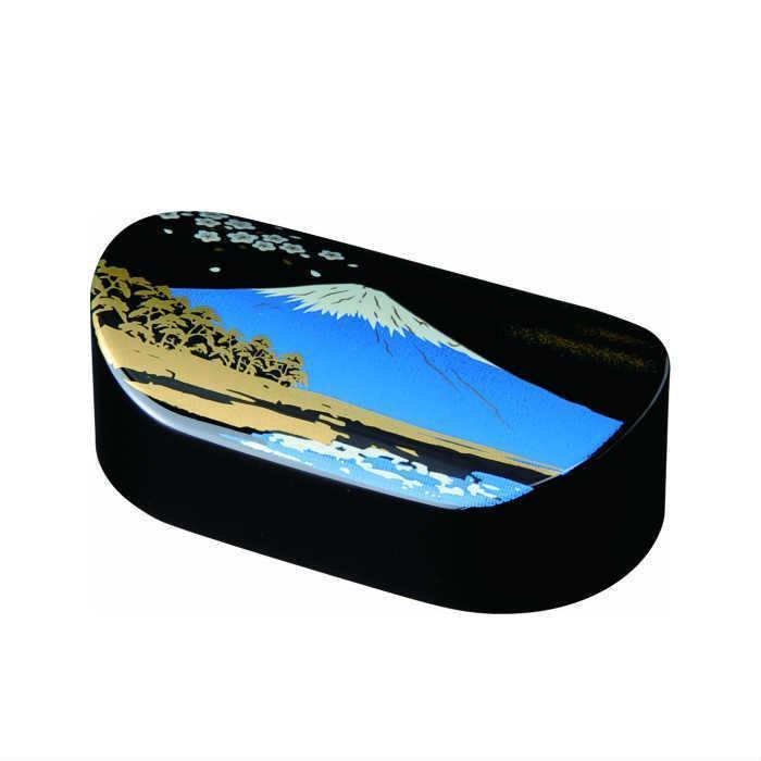 紀州漆器職人が丁寧に仕上げた【文鎮 ペーパーウェイト 小判型 黒 富士山】です。