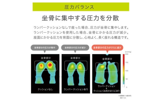 ■ランバークッションを使用することで坐骨にかかる圧力を背面に分散し、心地よく、長く座れます。
