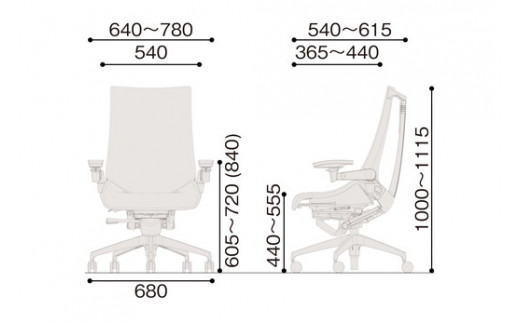 【サイズ】W540(脚:680mm)×D540~615×H1000~1115mm(SH:440~555)