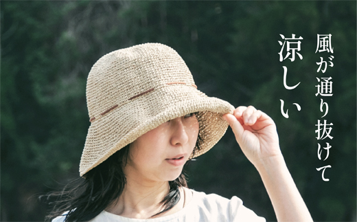 風通しが良いので汗をかいてもムレず快適です。和紙の断熱、UVカット機能が強い日差しを和らげてくれます。編地のすきまから風が抜けるのでとても涼しく、突然の風でも帽子が飛びにくいと好評いただいております。