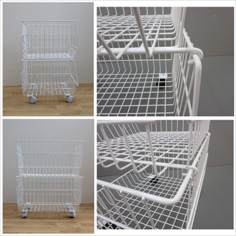 徹底したシンプル構造と省スペースにこだわった2段重ねるバスケットワゴンです。