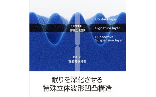 ■【1400Point 全身を支える】約1400個の点からなる、表面の凹凸構造が体圧を分散し、ベース部が身体をしっかり支えます。中間層の新ウレタンフォーム「レフレフォーム」採用でクッション性と通気性が向上。圧迫感が緩和され、寝返りもスムーズにリラックスしながら睡眠。気持ち良い寝覚めが得られます。
