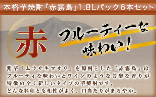 どんな料理とも相性がよく、口当たりがまろやかで飲みやすい本格芋焼酎『赤霧島』を1.8Lパック6本セットでお届けします。