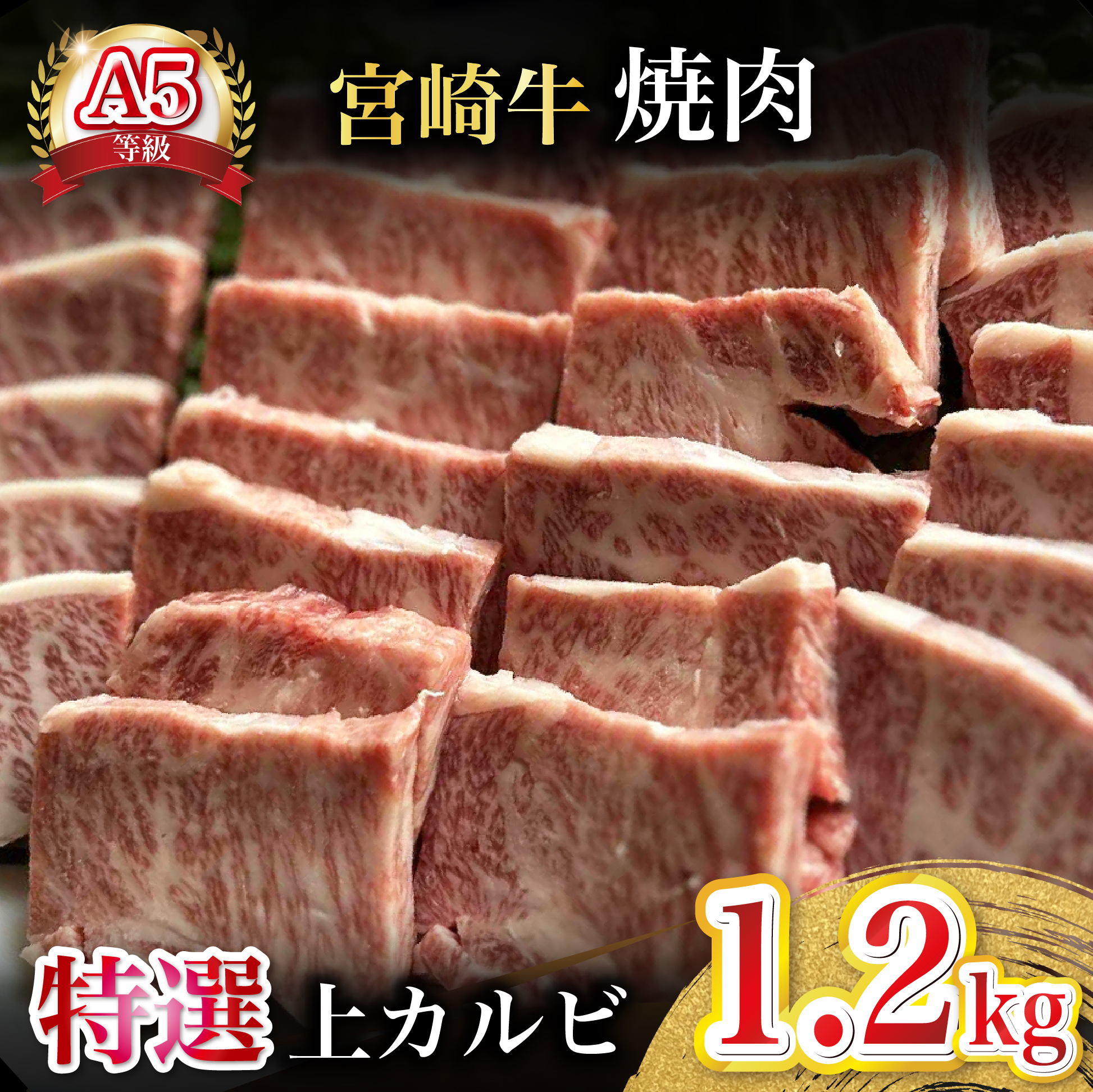 小林市産A5宮崎牛カルビ焼肉 1.2kg(300g×4P)