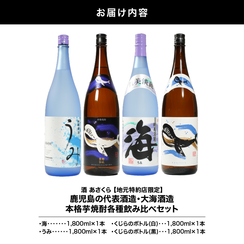鹿児島県を代表する酒造・大海酒造(株)のなかでも、特約店のみ販売することができる<地酒>を飲み比べセットとして豪華に揃えました。