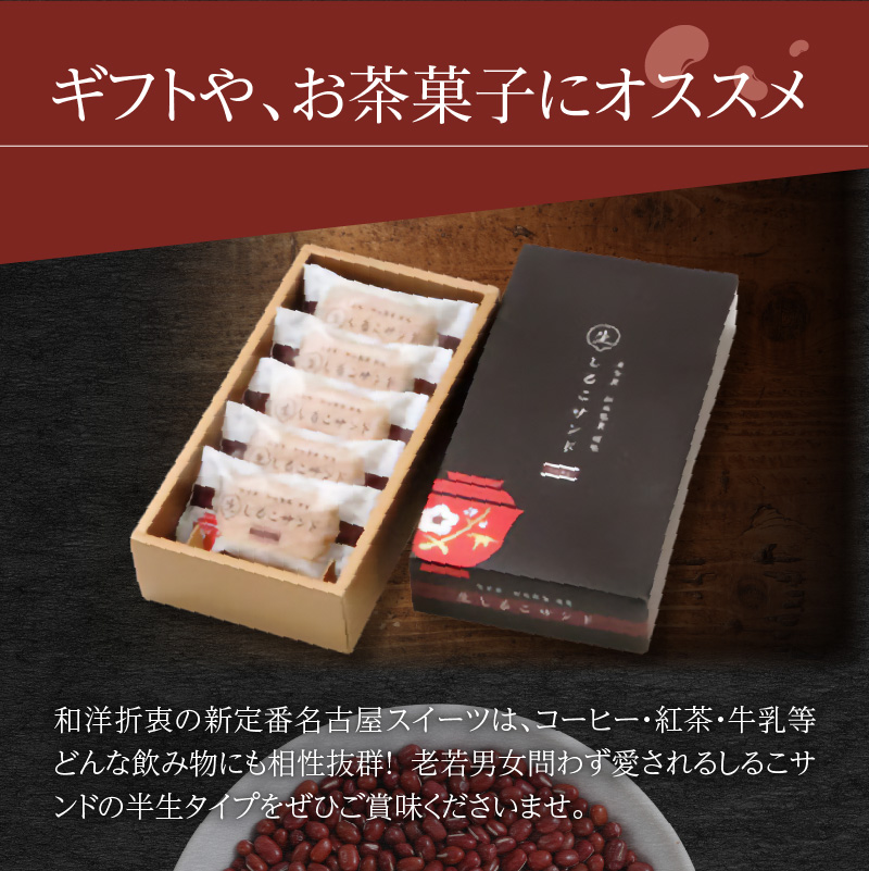 和洋折衷の新定番名古屋スイーツは、コーヒー・紅茶・牛乳等どんな飲み物にも相性抜群! 老若男女問わず愛されるしるこサンドの半生タイプをぜひご賞味くださいませ。
