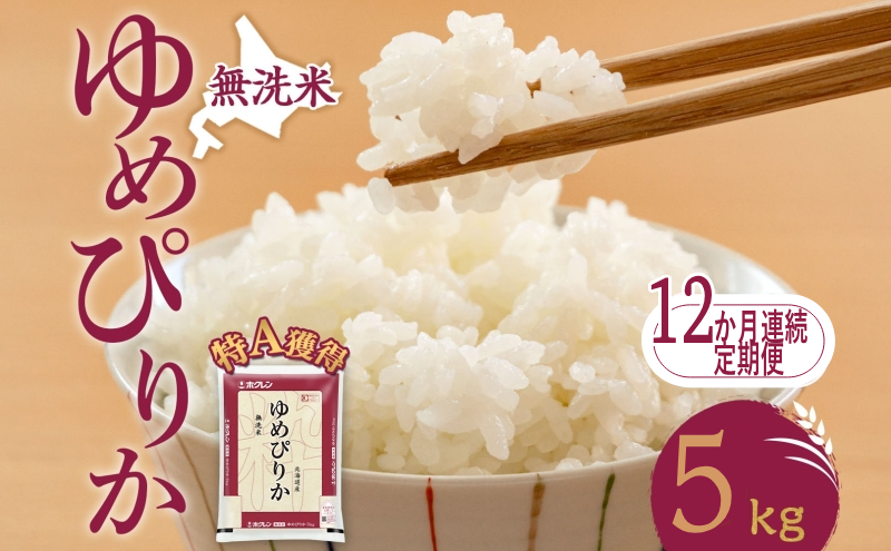北海道の特A米『ゆめぴりか』無洗米 5kg×全12回をお届けします。