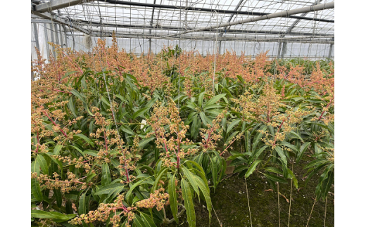 屋宜原農園では3カ所の園地施設内に加温機を設置していて、ハウス内の温度をしっかり管理することでマンゴーの実を安定的に着果させることを心がけています。