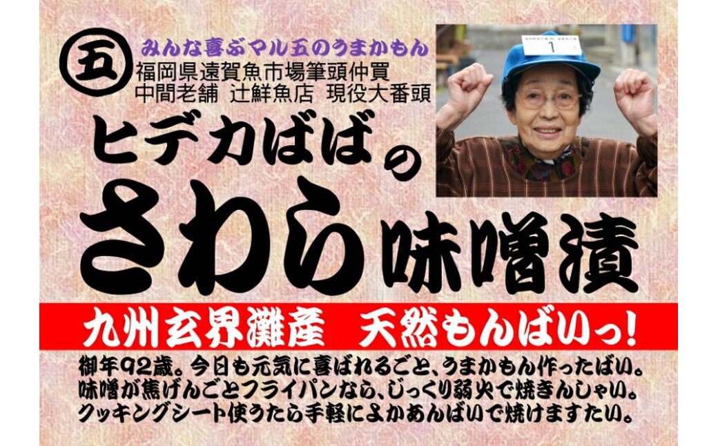九州玄界灘産の天然サワラを秘伝の味噌にじっくり丁寧に漬け込みました。鰆(サワラ)はタンパク質とビタミンを含む栄養価の高い魚でございます。