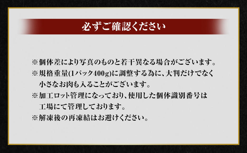 ※規格重量(1パック400g)に調整するために、大判だけでなく、小さなモモ肉が入ることがございます。