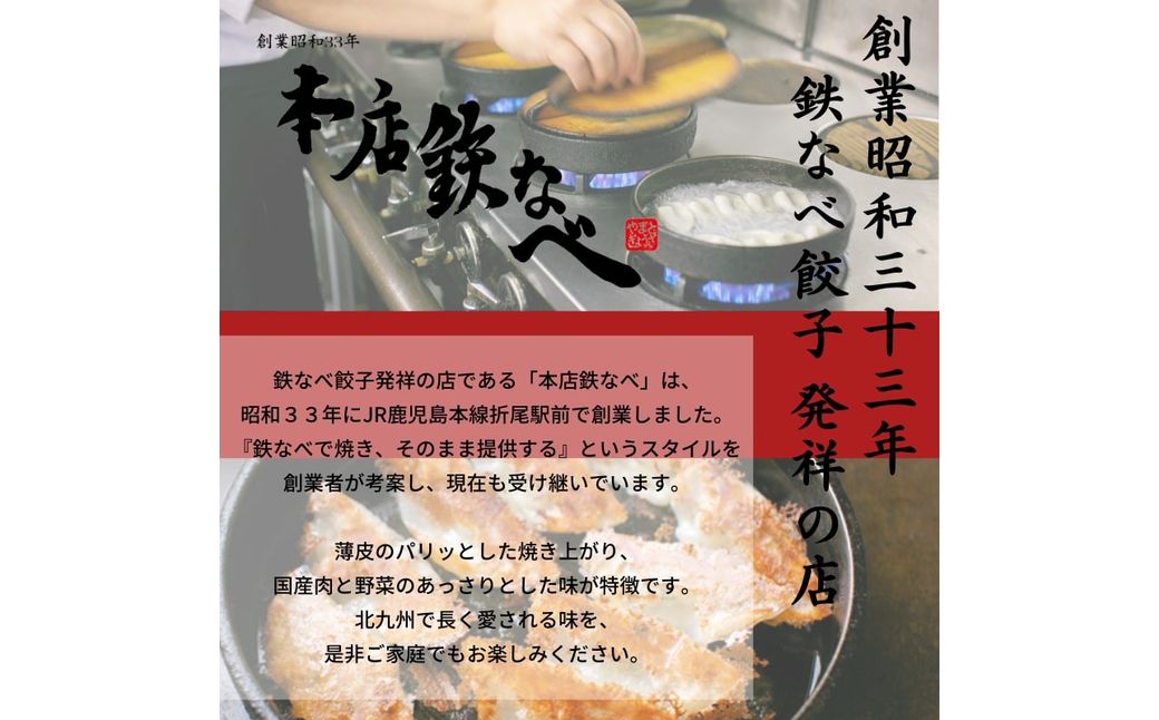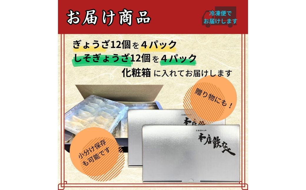 昭和33年創業、鉄なべ餃子発祥の店「本店鉄なべ」の冷凍餃子と冷凍しそ餃子のセットになります。