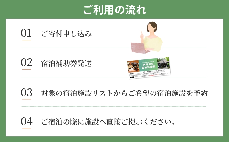 ご予約の際、「ふるさと納税の宿泊補助券使用」の旨をお伝えください。