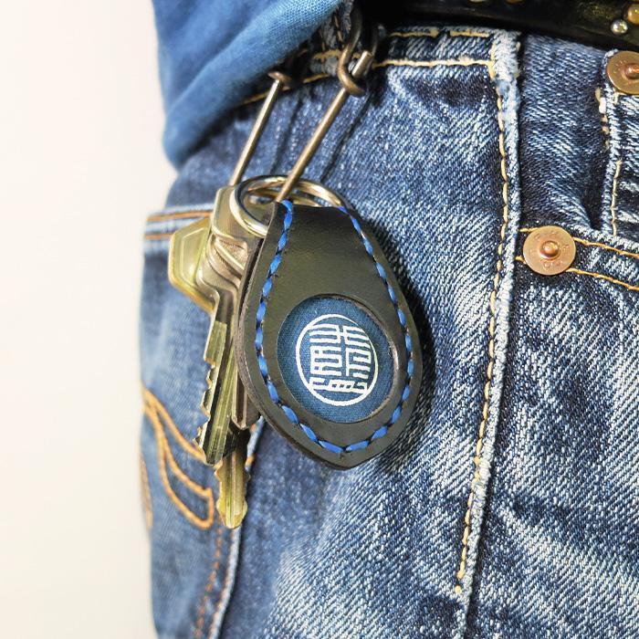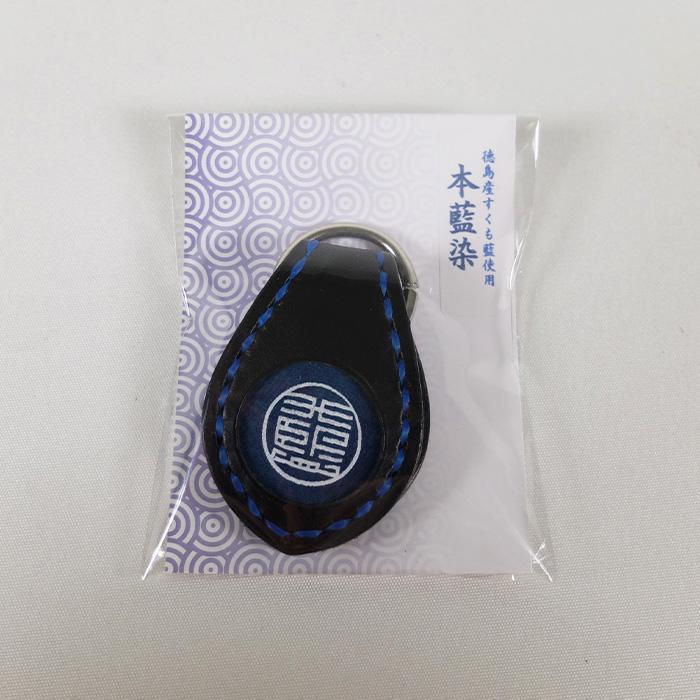 阿波レザー 阿波藍マーク 500玉キーホルダー