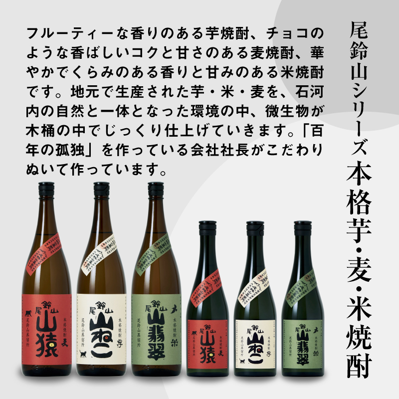 ●尾鈴山シリーズ本格芋・麦・米焼酎。