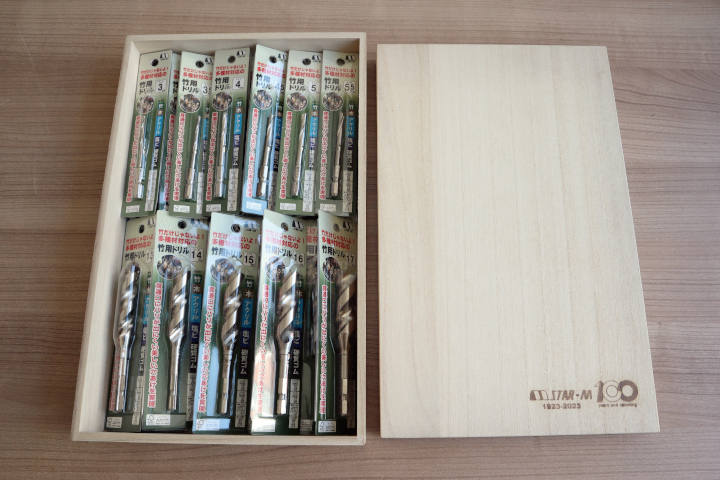 ・No.竹用ドリル(3mm・3.5mm・4mm・4.5mm・5mm・5.5mm・6mm・6.5mm・7mm・7.5mm・8mm・8.5mm・9mm・9.5mm・10mm・10.5mm・11mm・11.5mm・12mm・13mm・14mm・15mm・16mm・17mm・18mm・19mm・20mm・21mm):各1本 合計28本