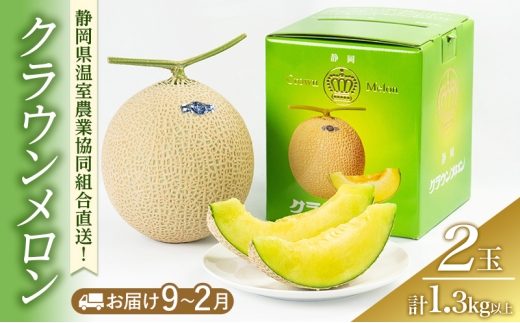 クラウンメロン 1.3kg以上 2玉(冬9~2月) 果物 メロン 青肉 フルーツ デザート 高級メロン ブランドメロン 袋井市 静岡県