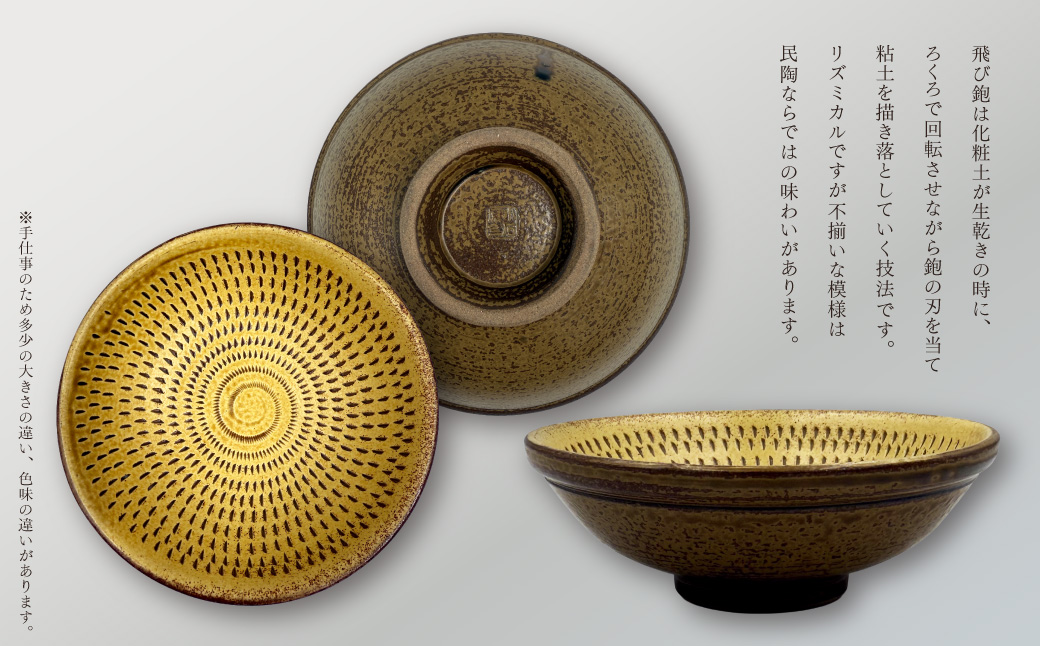 リズミカルですが不揃いな模様は民陶ならではの味わいがあります。