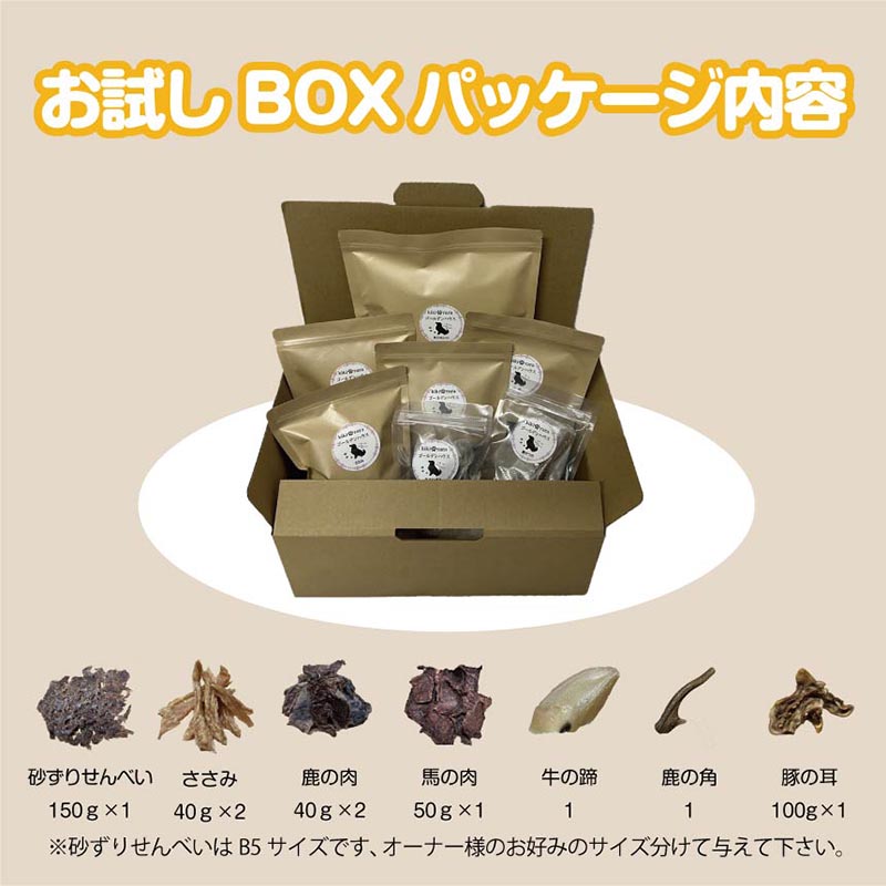 国産のすなずり・ささみ・鹿の角や肉・馬肉・ひづめをそのまま丁寧に乾燥し、素材の旨みと香りをぎゅっと閉じ込めたドッグスナック。自然の恵みを活かした高タンパクでヘルシーなジャーキーは、噛むほどに広がる豊かな味わいが魅力です。愛犬に安心して贈れる“ふるさとのごちそう”として、毎日のご褒美にも特別な時間にもぴったり。ワイルドで栄養豊富な逸品を、あなたの大切な家族へ。是非お試しBOXをよろしくお願いいたします。
