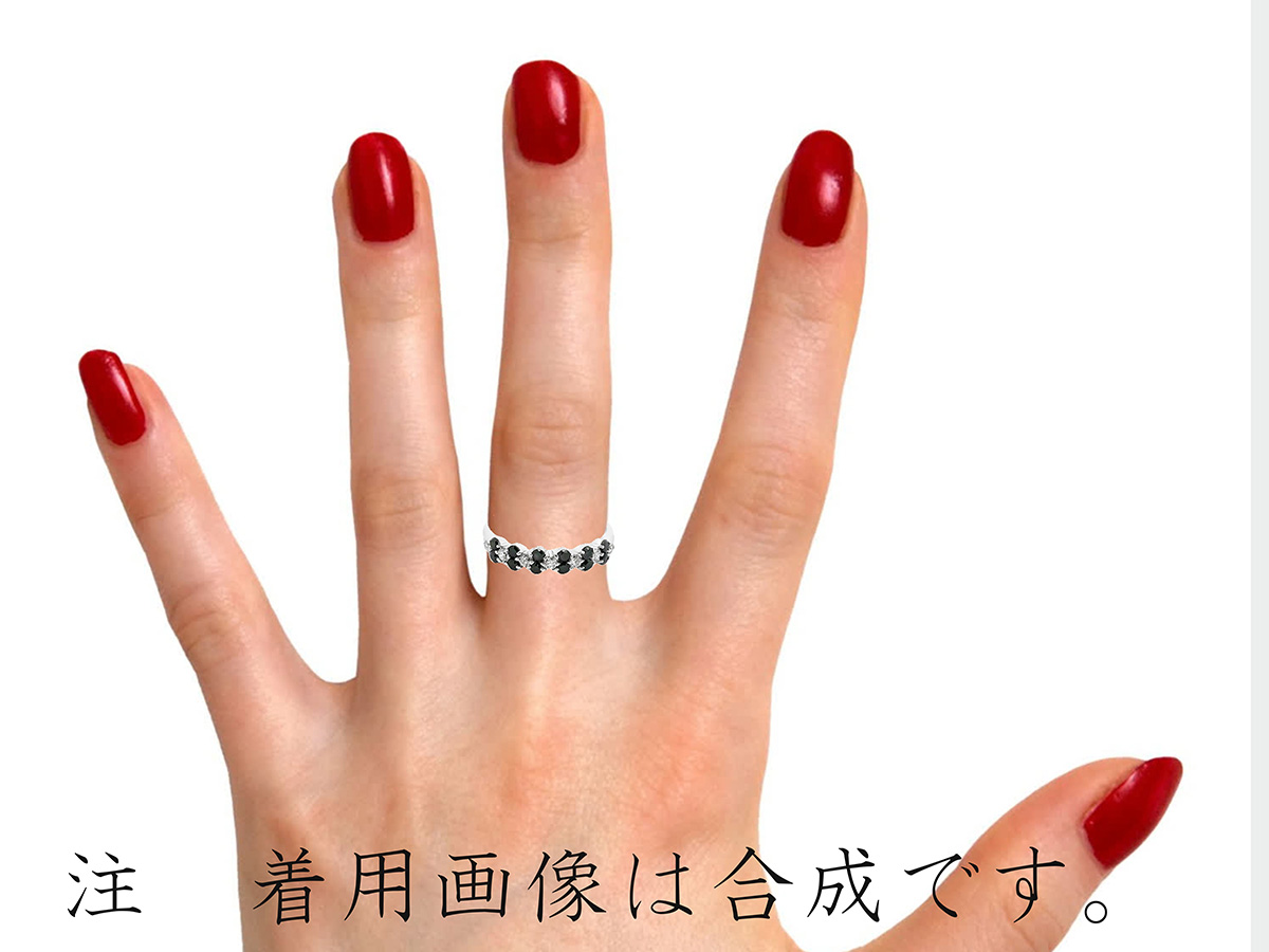 あえて「ブラック2石・白1石」の順に交互に留めたリングに仕上げました。