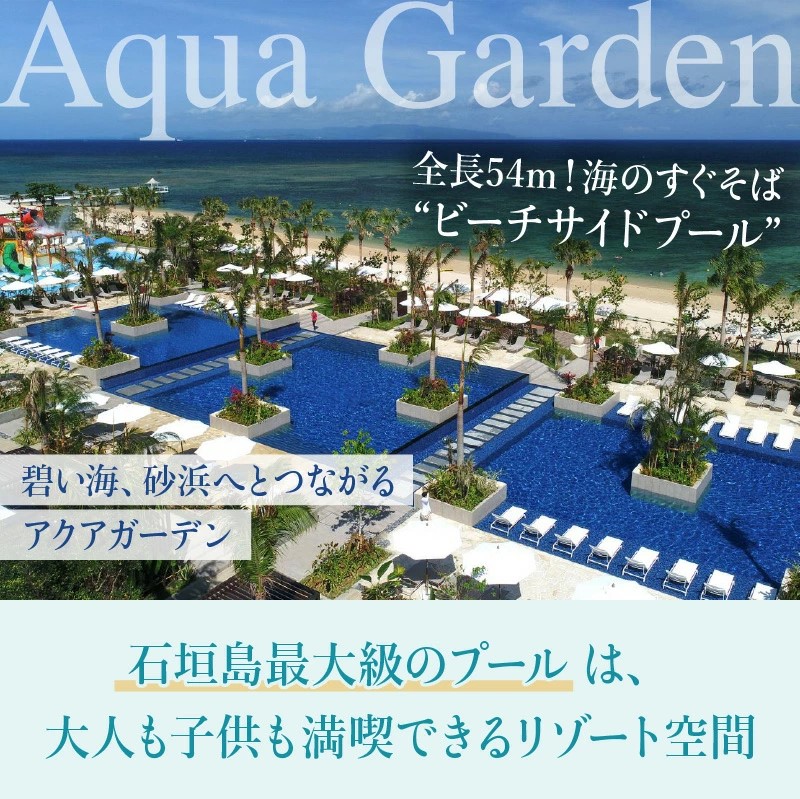 石垣島最大級のプールエリア「アクアガーデン」の他、インドアプール・大浴場・マリンアクティビティなど一泊では物足りない充実した施設とサービス。