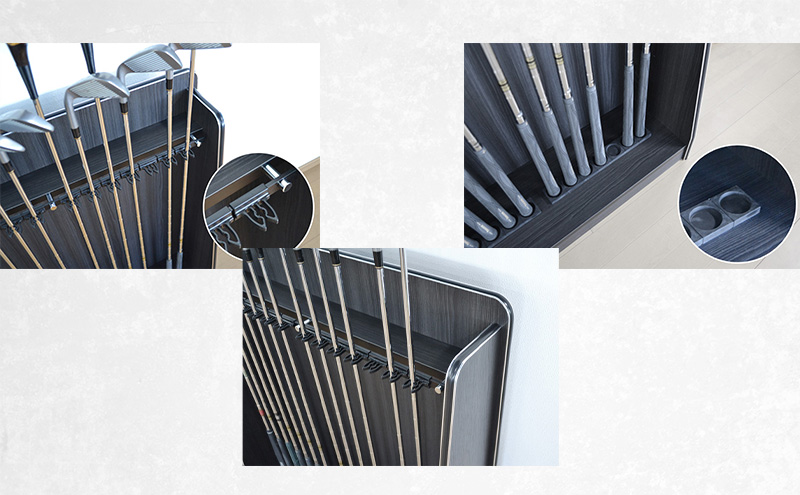 落ち着いたツヤ消しブラックの木目柄が大切なゴルフクラブを引き立ててくれます。