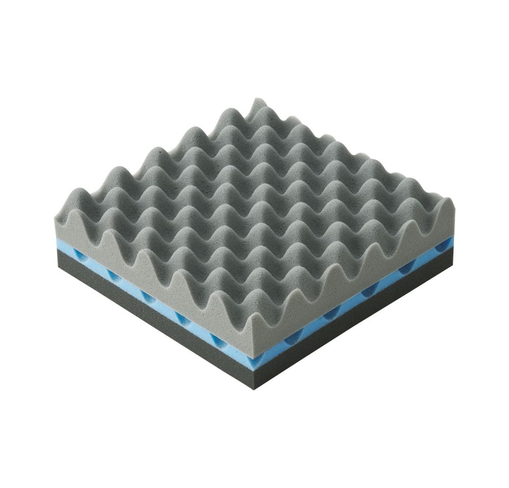 ■3フォームの優れたバランスで、身体をきめ細かく支え、中層の高通気ウレタンが湿気を拡散。