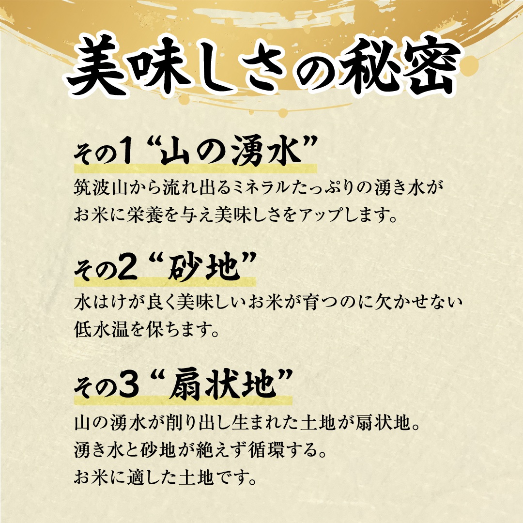 限られた土地で作られ、そのおいしさからほとんどが地元で消費されてしまう幻の米で、山からの清流と砂目の土地の恩恵を受けた極上のコシヒカリです。