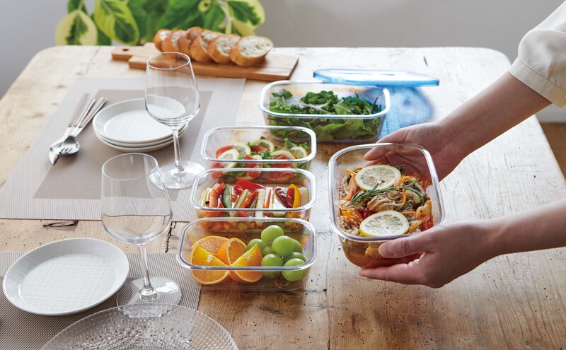 そのまま食卓に出せるデザインで、野菜や作りおきのお惣菜などをおいしく保存できます。