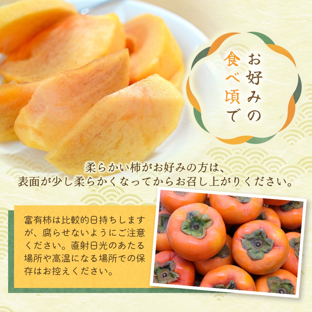 富有柿は比較的日持ちする柿ですが、柔らかい柿がお好みの方は表面が少し柔らかくなってからお召し上がりください。