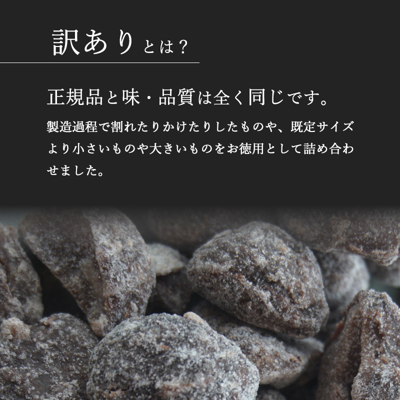 その製造過程で、味はよいけど小ぶりだったり、割れたり欠けたりした栗をお徳用袋に詰めました。