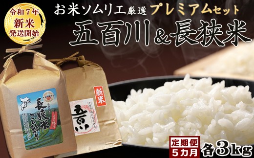 - 長狭米コシヒカリ(一等米):精米3kg×1袋 長狭米五百川(一等米):精米3kg×1袋 毎月1セット×5回発送