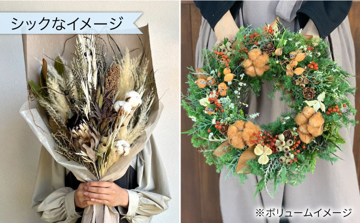 ※季節のスワッグ、リース、アレンジメント等、ドライフラワーやプリザーブドフラワーが中心です。