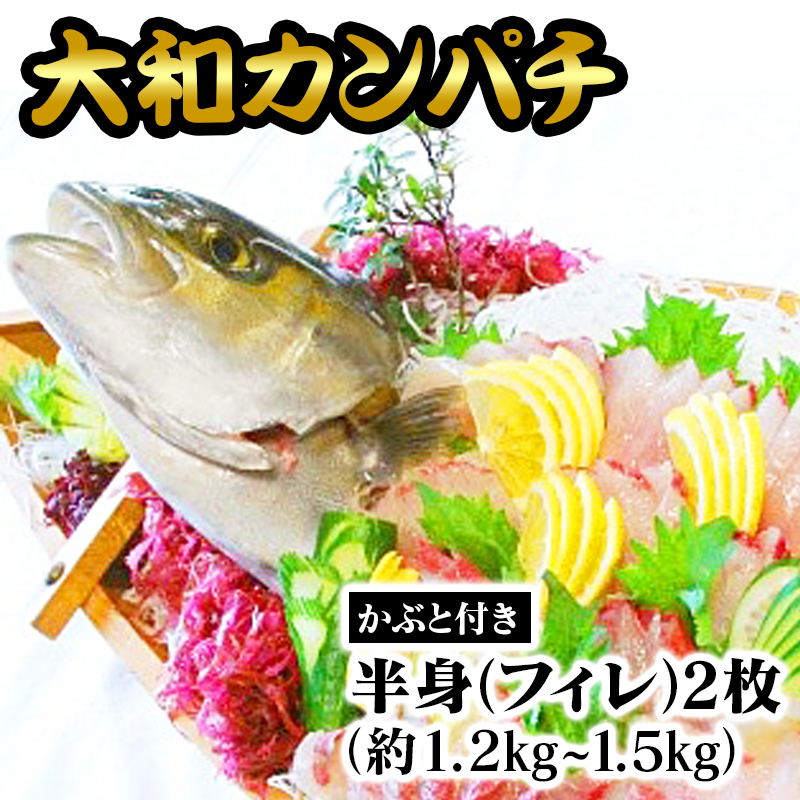 延岡産「大和カンパチ」 半身(フィレ)約1.2kg〜1.5kg×2枚 かぶと付き