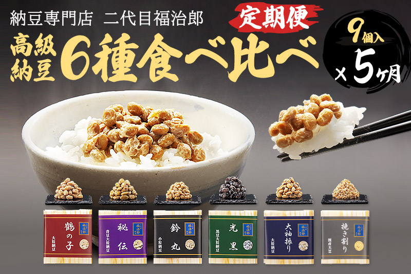 ■内容量:高級納豆6種 9袋入り(鶴の子2・秘伝1・光黒1・鈴丸2・大袖振り2・挽き割り1)【1袋 30g×2】×5回お届け