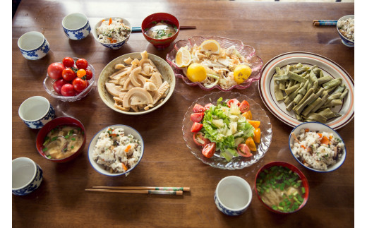 サニーレタス、菜花、春キャベツ、アイスプラント、トマト、きゅうり、三つ葉、小松菜、ほうれん草、新玉ねぎ、スナップエンドウ、空豆、筋なし豆、四角豆、サラダごぼう、ニンニク芽