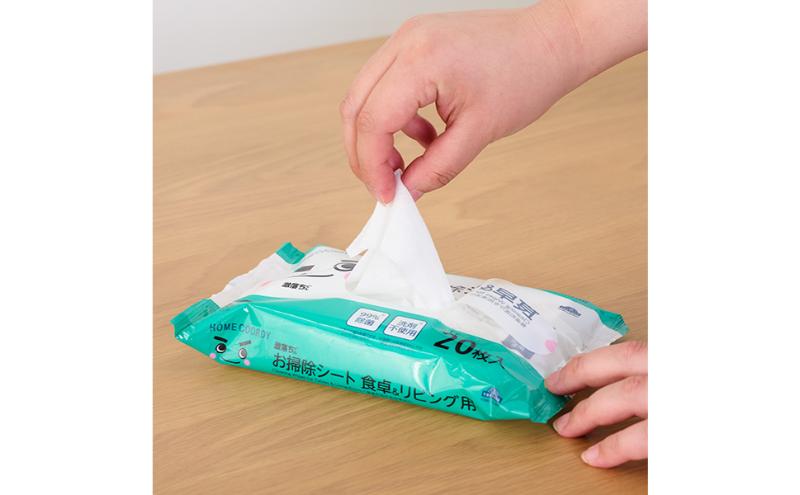 原産国 日本 / 材質 ポリエステル、レーヨン / 液性 弱アルカリ性 / 成分 水、エタノール、アルカリ電解水、pH安定剤、除菌剤 / サイズ 300×200mm / 枚数 20枚