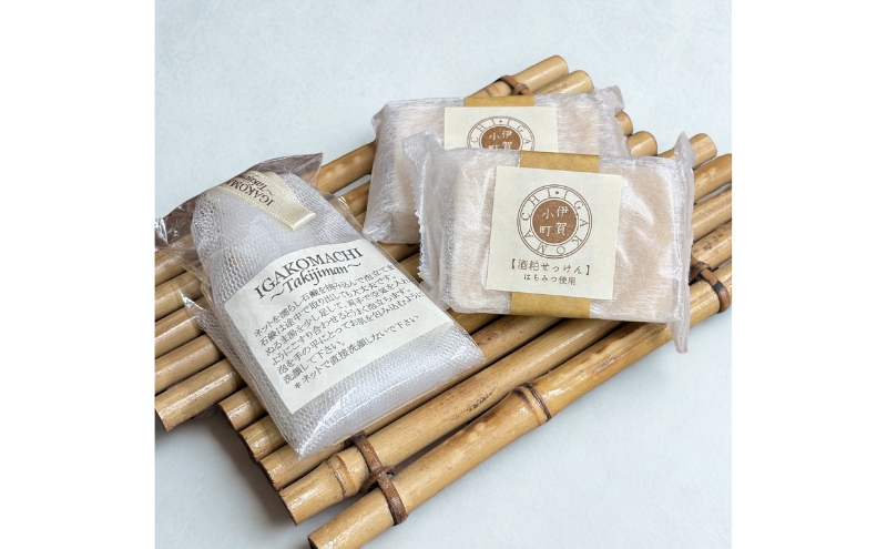 石けんの魅力を引き出す、オリジナル泡立てネット(長さ18cm・二重構造)付き。