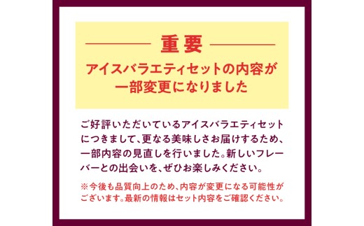 - 【内容量】 ・チョコバッキー カジゴン 6本入×1袋 ・CHATERAISE PREMIUM マダガスカルバニラ4個入 ・ピュルテ マダガスカルバニラ4本入 ・八ヶ岳南牧村契約牧場しぼりたて牛乳バー 6本入 ・北海道バターソフト4個入 ・ふっくらシューアイス バニラ 6個入 【原材料】 《チョコバッキー カジゴン》 チョコレートコーチング(国内製造)、準チョコレート、乳製品、砂糖、水あめ、植物油脂、シリアルフレーク、コーンフレーク、乳等を主要原料とする食品、でん粉、寒天、こんにゃく粉/乳化剤、安定剤(増粘多糖類)、香料、着色料(カロテン)、(一部に乳成分・小麦・大豆を含む) 《CHATERAISE PREMIUM マダガスカルバニラ》 クリーム(生乳(北海道産))、脱脂濃縮乳、砂糖、卵黄(卵を含む)/香料 《ピュルテ マダガスカルバニラ》 乳製品(外国製造、国内製造)、チョコレートコーチング、砂糖、卵黄、水あめ、乳等を主要原料とする食品、食塩、でん粉、寒天、こんにゃく粉/乳化剤、香料、安定剤(増粘多糖類、セルロース)、(一部に卵・乳成分・大豆を含む) 《八ヶ岳南牧村契約牧場しぼりたて牛乳バー》 生乳(長野県南牧村産)、乳製品、砂糖、水あめ、でん粉、もち粉、寒天、こんにゃく粉 《北海道バターソフト》 乳製品(国内製造又はニュージーランド製造)、コーン、砂糖、チョコレートコーチング、水あめ、食塩、でん粉、寒天、こんにゃく粉/乳化剤、安定剤(増粘多糖類、セルロース)、香料、着色料(カロテン)、(一部に卵・乳成分・小麦・大豆を含む) 《ふっくらシューアイス バニラ》 シュー皮(国内製造)、乳製品、砂糖、水あめ、生乳、異性化液糖、粉糖、でん粉、寒天、こんにゃく粉/乳化剤、カゼインNa、安定剤(増粘多糖類、セルロース)、香料、リン酸塩(Na)、膨脹剤、(一部に卵・乳成分・小麦・大豆を含む)