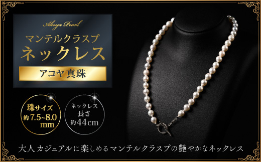 艶やかアコヤ真珠とお洒落なデザインのマンテルクラスプを使用し、華やかさとクールさを兼ね備えた雰囲気に。