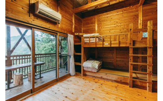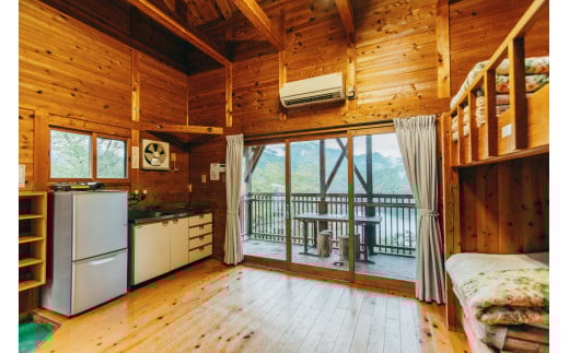 平成の森Aタイプバンガロー 1泊宿泊券(4名様用)。