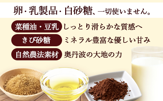 ■ 卵・乳製品・白砂糖は使いません。動物性原料(卵・バター・生クリーム)は一切不使用。代わりに選んだのは、植物由来の厳選素材です。