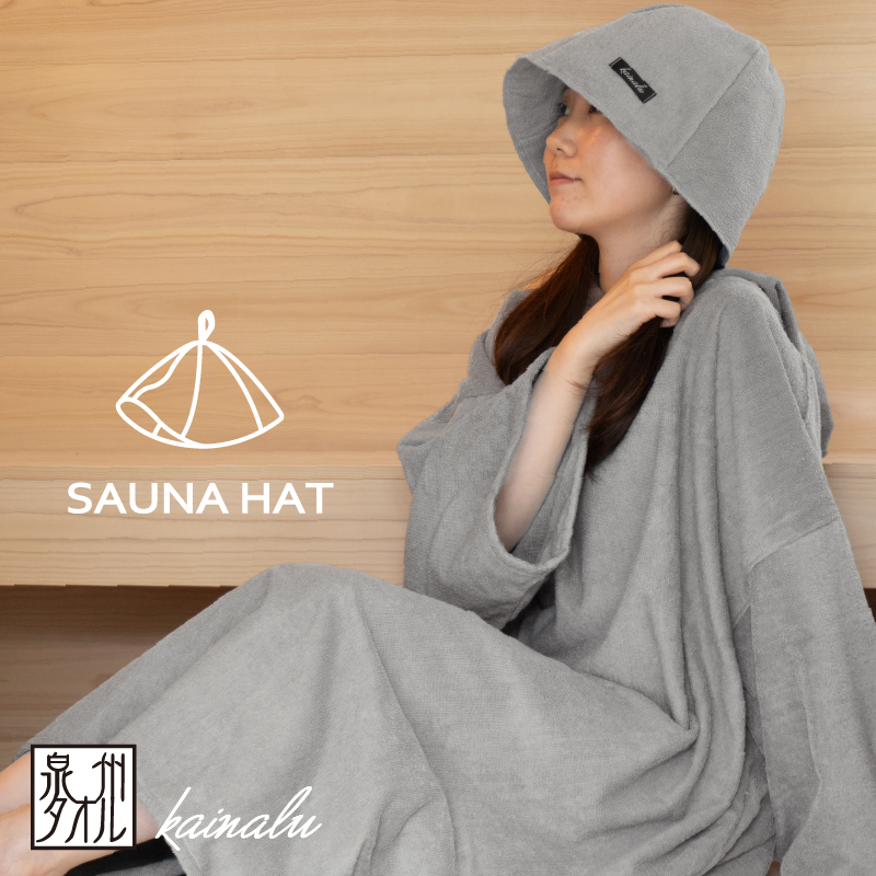 泉州タオル生地で作った綿100%のサウナハットは綿の優しい肌ざわりで吸水力はバツグンです。サウナの熱い蒸気による「のぼせ」や「髪の乾燥」を防いでくれ、快適なサウナライフを楽しめます。