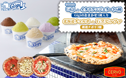 ジェラテリアGigi イタリアンジェラート 6種 おまかせ1種入り チェルボ 石窯ピッツァ 厳選ナポリ3種 セット ジェラート 計6個 カップ スイーツ ピザ ピッツァ 石窯ピザ 計3枚 ふるさと納税 北海道 恵庭市 恵庭